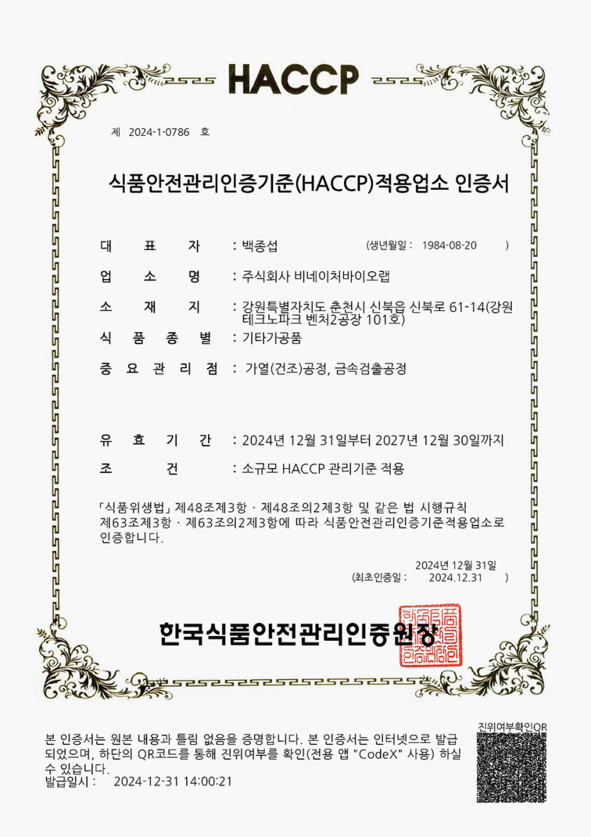 제 2024-1-0789호 HACCP 인증서 페이지 정보 작성자 관리자 댓글 0건 조회 11회 작성일 25-07-20 00:08 목록 본문 제 2024-1-0789호 HACCP 인증서 이전글그린바이오기업 신고증 25.07.20 다음글제 2023113896호 기업부설연구소인정서 25.07.20