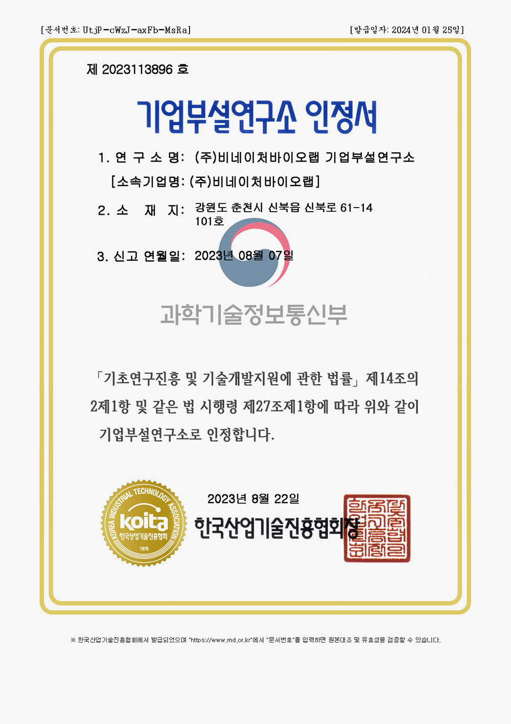 No. 20240228010009 Confirmed as a Venture Business under Certificate..