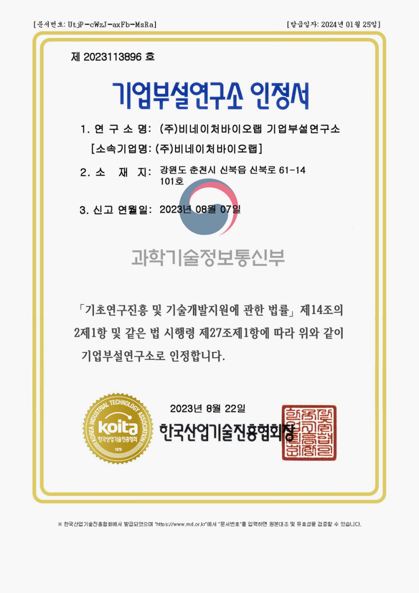No. 2023113896 Accredited as a Company-Affiliated Research Institute under Certificate