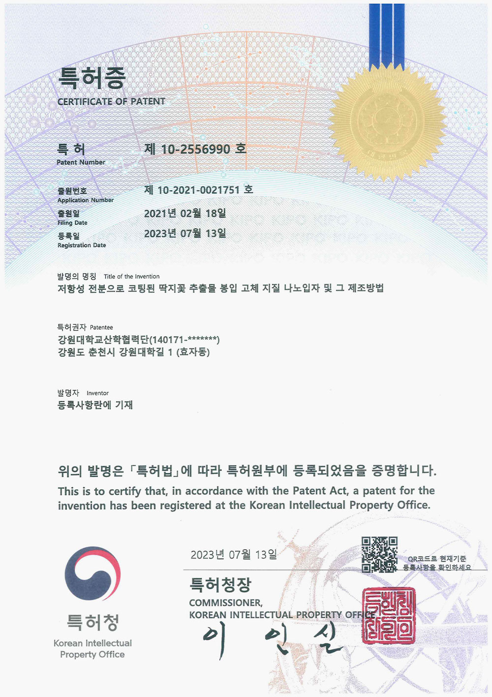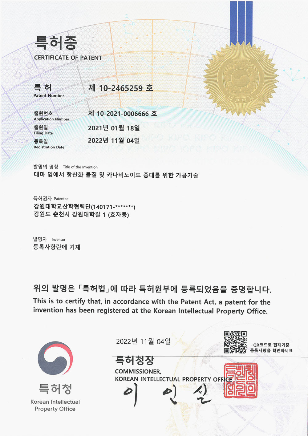 doctoral researchers 20 patents, 2 PCTs, 60 SCI-class papers, etc