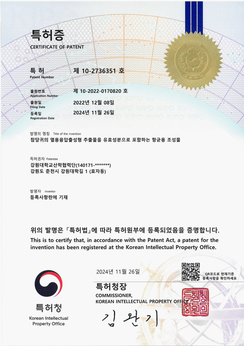 Antimicrobial composition comprising a hot-melt extruded Angelica gigas extract as an active ingredient Patent No. 10-2736351