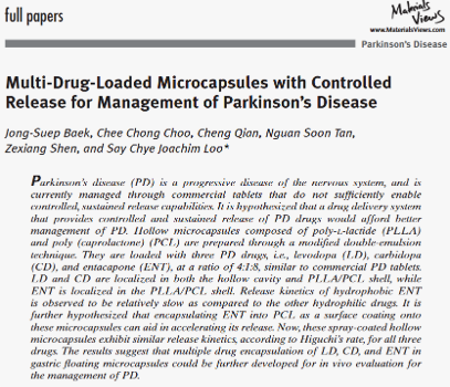 Multi-Drug-Loaded Microcapsules with Controlled Release for Management of Parkinson's Disease